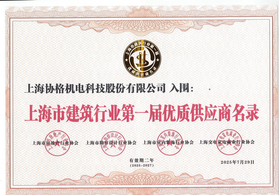 7月29日,上海市建筑行業(yè)第一屆優(yōu)質(zhì)供應(yīng)商名錄發(fā)布會暨全產(chǎn)業(yè)鏈對接大會圓滿召開。會上,《上海市建筑行業(yè)第一屆優(yōu)質(zhì)供應(yīng)商名錄》正式發(fā)布——這是上海建筑領(lǐng)域首個(gè)權(quán)威供應(yīng)商名錄。其中,上海協(xié)格機(jī)電科技股份有限公司憑借突出的技術(shù)實(shí)力與優(yōu)質(zhì)綠色能源解決方案成功入圍。